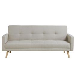 Le canape convertible Wooden 3 places en tissu beige, apportera un style indeniable à votre interieur. Perche sur ses pieds fuseaux obliques en bois, il se distingue par sa silhouette et son dossier capitonne.Avec son design et ses dimensions compactes, ce canape convertible est ideal pour tous type