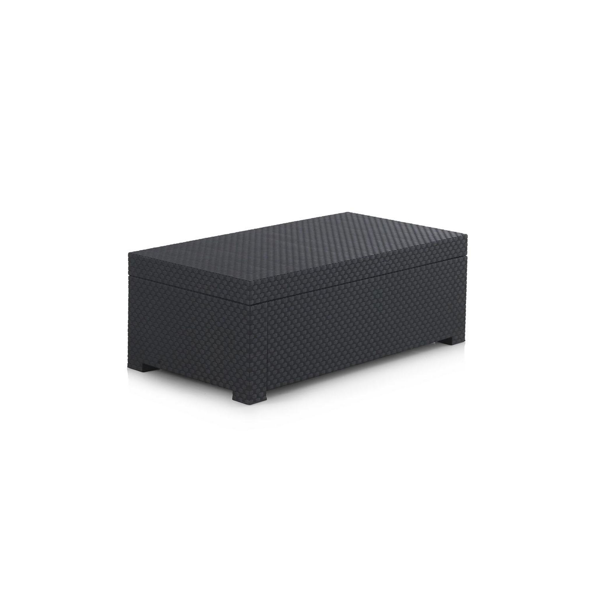 L'effet résine tressée donne à ce coffre une allure à la fois chic et moderne, qui lui permet d'être installé aussi bien en intérieur qu'en extérieur.