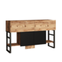 Découvrez la console Tari au style industriel, une pièce polyvalente pour votre intérieur. Avec sa couleur principale bois naturel et des accents noirs, cette console apporte une touche d'authenticité à votre décoration. Fabriquée avec une structure 100% métal et des étagères en panneaux de particules revêtus de mélamine, elle offre à la fois solidité et durabilité. Dotée d'étagères, de deux placards et d'une partie supérieure ouverte, cette console offre un espace de rangement généreux pour organiser vos affaires avec style. Ajoutez une touche industrielle et fonctionnelle à votre foyer avec la console Tari.