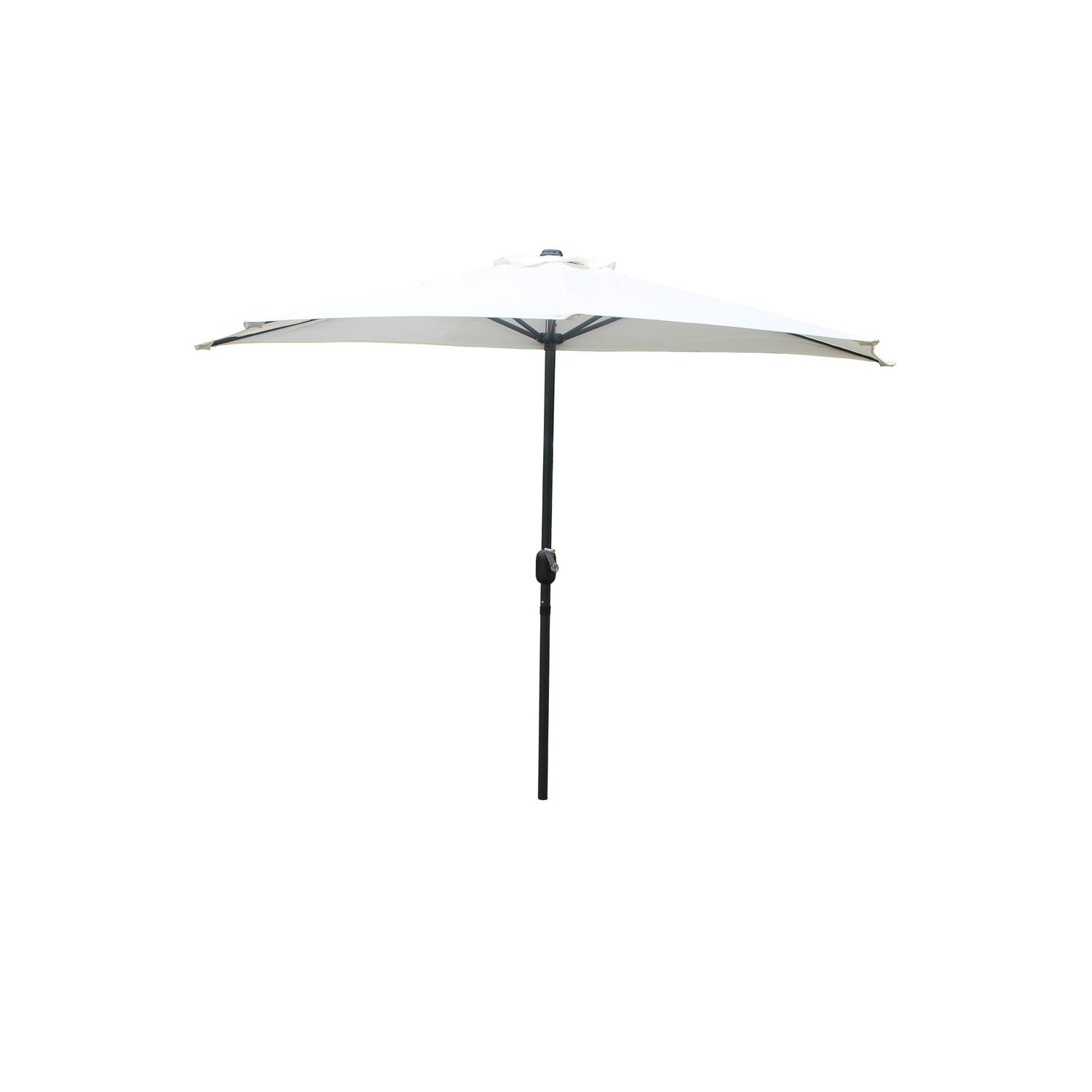 Profitez de repas conviviaux sur votre terrasse à l'ombre grâce à ce demi parasol Ce parasol au design tendance et sa couleur de toile ecru lui permettra de s'adapter facilement à votre exterieur.Sa structure en aluminium recouverte de peinture epoxy et sa grande toile de 160g/m² vous protegeront de