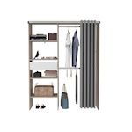 Conçu en panneaux de particules résistants, il offre une belle capacité de rangement grâce à ses 4 étagères, ses 2 tringles pour suspendre vos vêtements et son tiroir pratique pour les petits accessoires. La fermeture par rideau apporte une note de douceur tout en masquant le contenu en un clin d'œil.