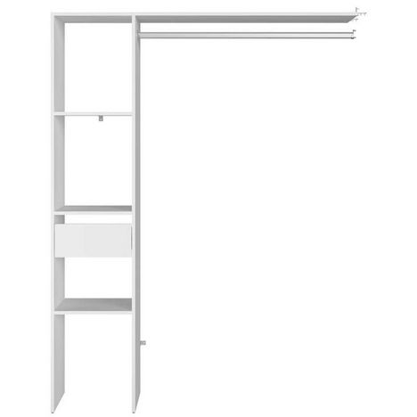 Dressing blanc 3 étagères, 1 tiroir, penderie 138 x 40 x 180 cm ELYSEE