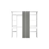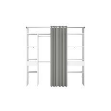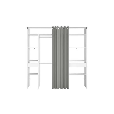 Dressing blanc avec rideau gris et 2 penderies, 6 etagères et 2 tiroirs