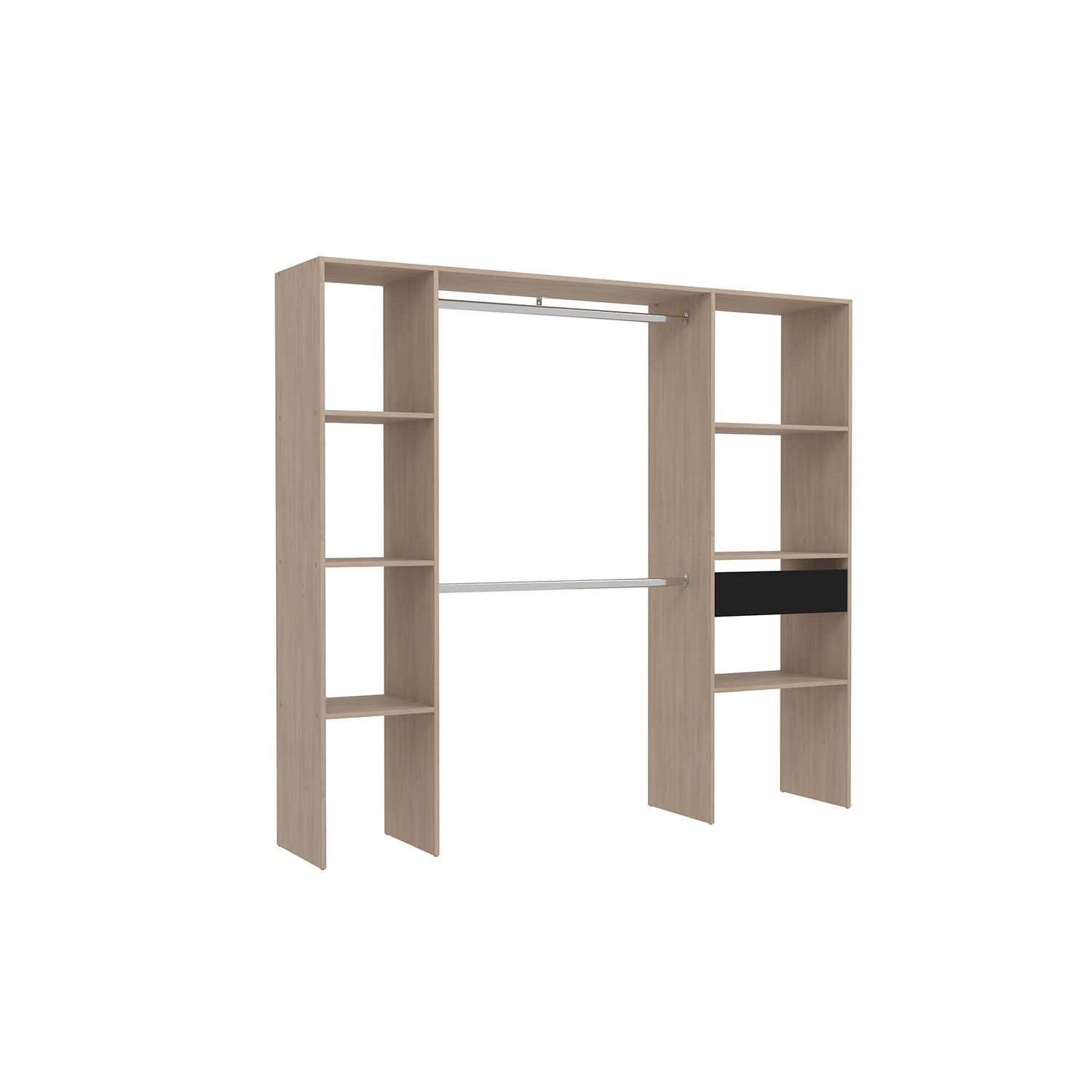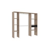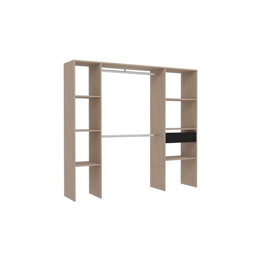 Dressing bois avec 6 étagères, 1 tiroir et 2 penderies : 198 x 40 x 180 cm ELYSEE