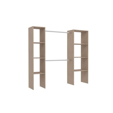 Dressing bois avec 6 étagères et 2 penderies : 198 x 40 x 180 cm ELYSEE