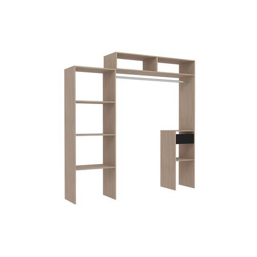 Dressing bois extensible avec penderie, étagères et tiroirs ELYSEE