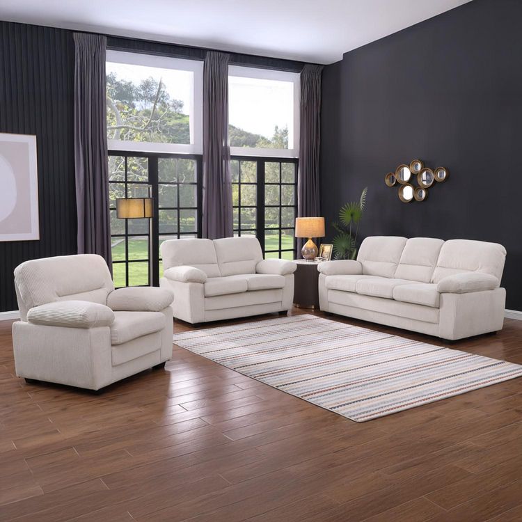 Ensemble canapé 3 places + 2 places + fauteuil en velours côtelé beige LINCOLN
