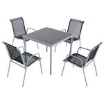 A la recherche d'un ensemble de jardin pour accueillir vos proches autour d'un bon repas ? Craquez pour cet ensemble Lusiana compose d'une table de repas et 4 fauteuils. Avec sa structure en acier recouvert de peinture epoxy, ce salon robuste a ete conçu pour l'exterieur afin que vous passiez de beaux moments dans le jardin. Cet ensemble a ete conçu pour optimiser l'espace et convient parfaitement pour les petites terrasses et les balcons, ou si vous avez un petit coin de jardin à meubler. Ses fauteuils en toile PVC vous permettront de passer un repas confortablement installe. Alors n'hesitez plus et accueillez vos proches pour passer un bon moment autour de l'ensemble 4 places Lusiana !