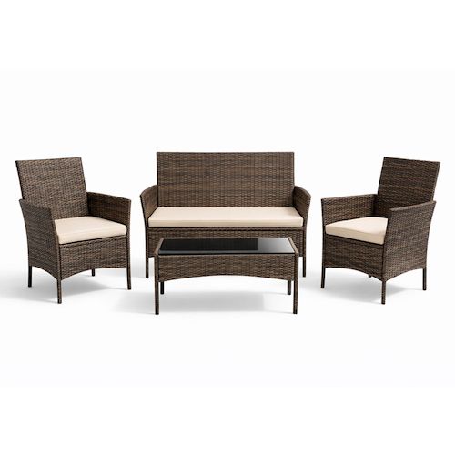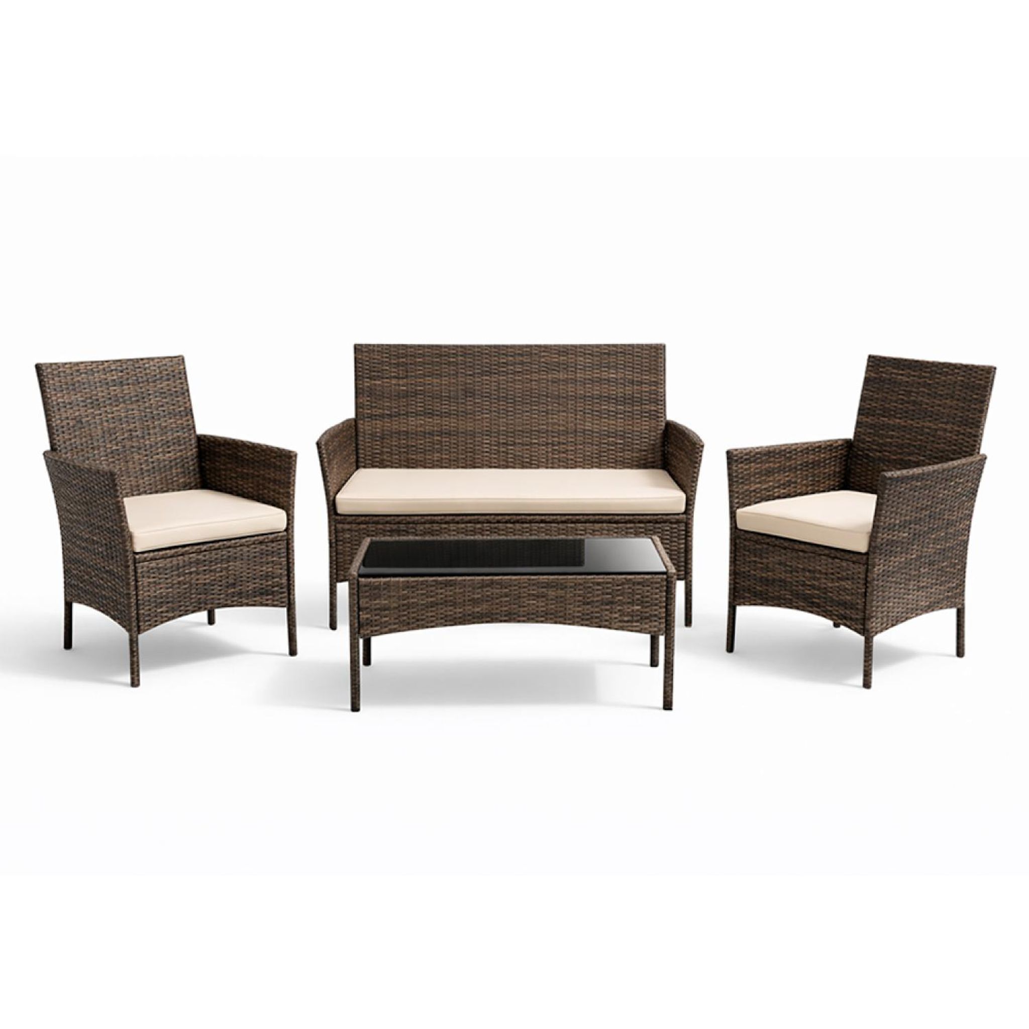 Ensemble de jardin 4 places en résine tressée marron et coussins beige LOOS