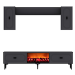 Ensemble meuble TV avec étagères murales et cheminée LED 150cm gris anthracite VIBRA