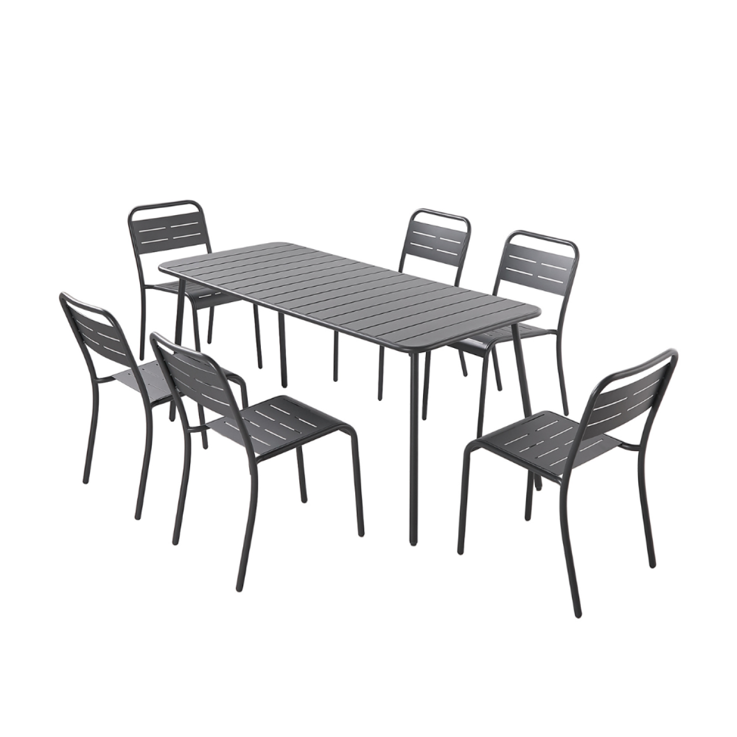 En savoir +Table de jardin + chaises 6 personnes en acier gris foncé Bergame