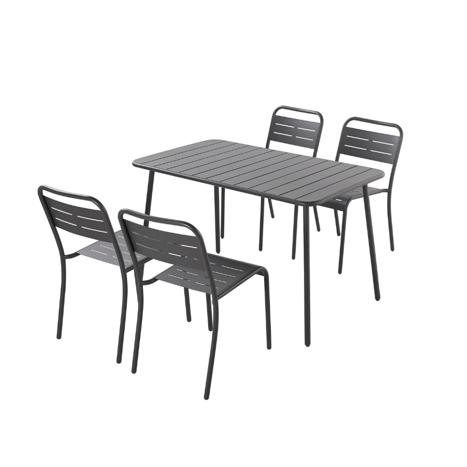 Table de jardin + chaises 4/6 personnes en acier gris foncé Bergame