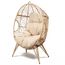 Fauteuil œuf sur pied en résine beige effet rotin JANE
