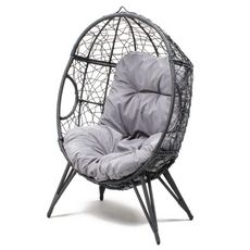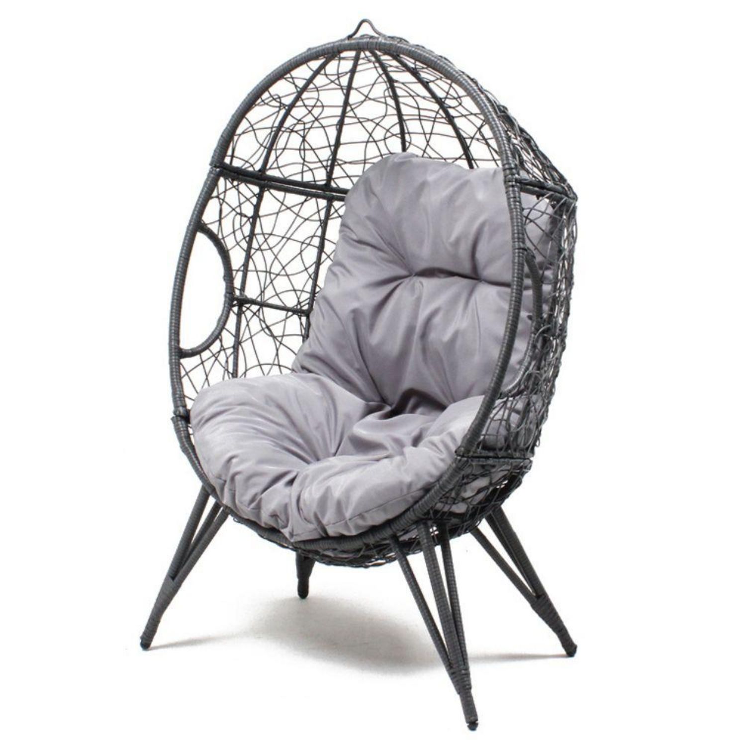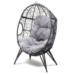 Fauteuil œuf sur pied en résine gris effet rotin JANE