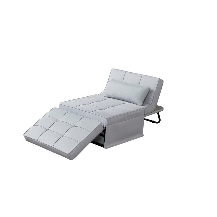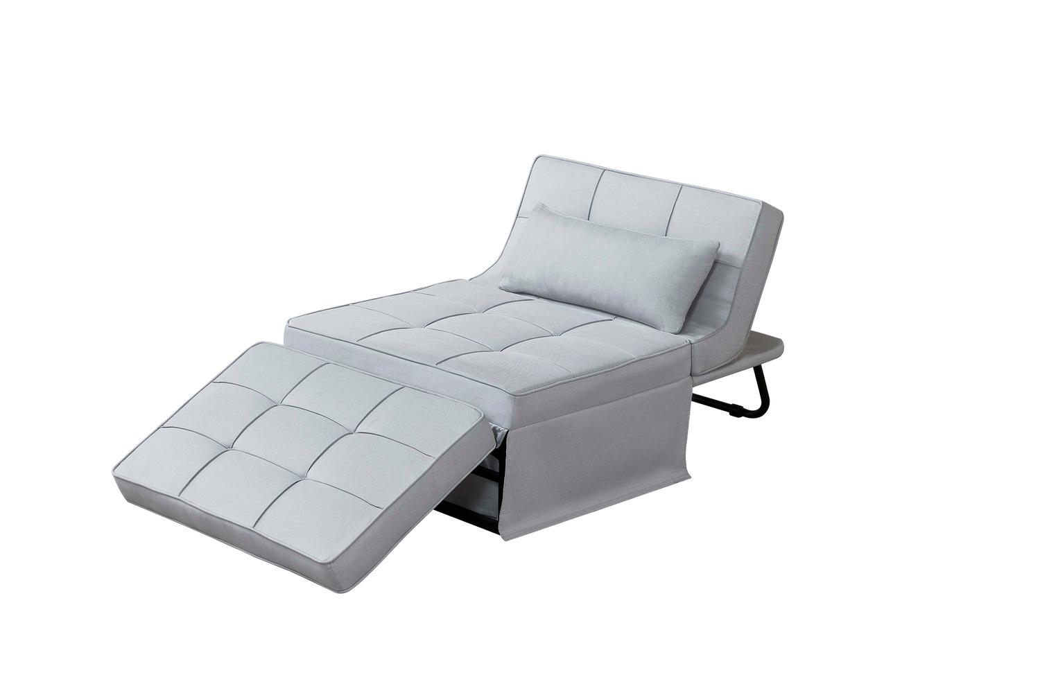 Fauteuil pouf ottoman gris 3 en 1 en tissu gris clair OTA