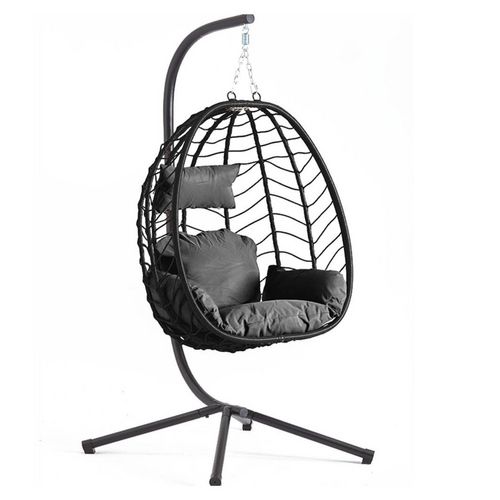 Fauteuil suspendu en résine effet rotin noir LIMA