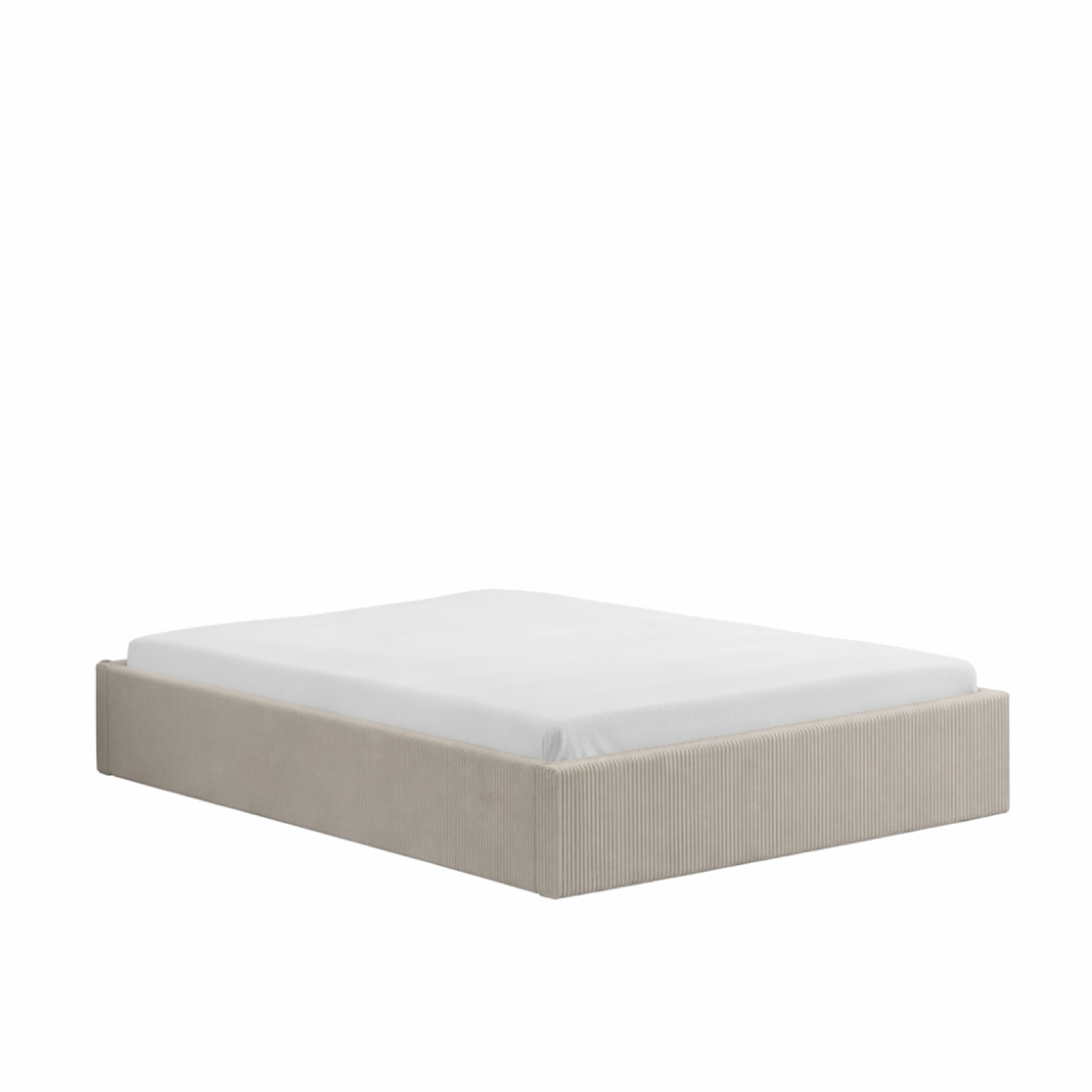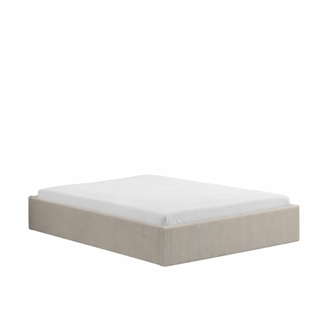 Caractéristiques techniques Couleur : BeigeDesign : Velours côteléType : Lit avec coffre de rangementPlaces : 2 placesRevêtement : Velours beigeStructure : Contre-plaquéLattes : Bois de peuplierGarnissage structure : Mousse 25 kg/m3Avec sommier : OuiAvec coffre : OuiAvec matelas : NonNombre de latte