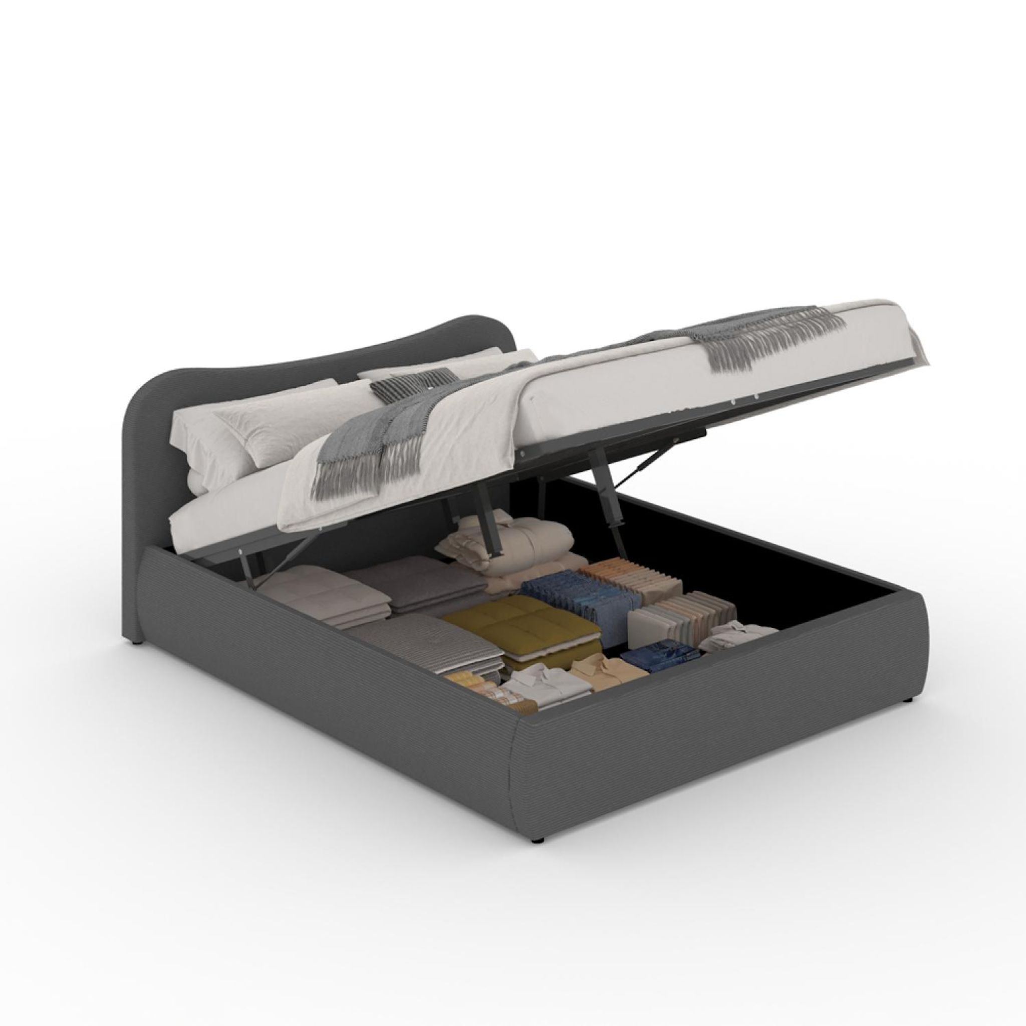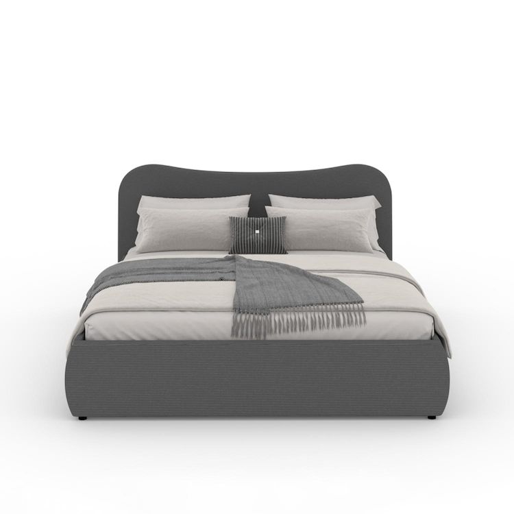 Lit coffre 160x200cm design arrondi velours côtelé gris PLANO