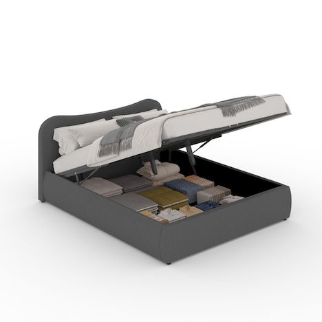 Fonctionnel et discret, son grand coffre de rangement dissimulé sous le sommier permet de libérer de l'espace au quotidien. Linge de lit, coussins ou vêtements trouvent facilement leur place tout en restant accessibles.