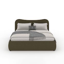 Lit coffre 160x200cm design arrondi velours côtelé vert PLANO