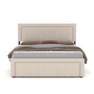 Lit contemporain avec coffre de rangement 160x200cm en velours beige NASHVILLE