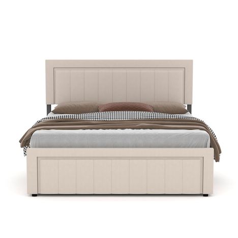 Caractéristiques techniques Couleur : BeigeDesign : Lignes graphiquesType : Lit coffre de rangementPlaces : 2 placesRevêtement : VeloursStructure : Bois synthétiqueLattes : Bois de peuplierGarnissage structure : Mousse 25 kg/m3Avec sommier : OuiAvec coffre : OuiAvec matelas : NonEntretienLe nettoyag