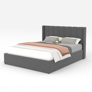 Caractéristiques techniques Couleur : GrisDesign : Lignes verticalesType : Lit coffre de rangementPlaces : 2 placesRevêtement : VeloursStructure : Bois synthétiqueLattes : Bois de peuplierGarnissage structure : Mousse 25 kg/m3Avec sommier : OuiAvec coffre : OuiAvec matelas : NonEntretienLe nettoyage