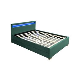 Gagnez de l'espace grâce à cette structure de lit 140x190 cm et ses grands tiroirs qui vous permettront de ranger vos draps et vêtements à l'abri de la poussière. Le revêtement de la structure est en velours vert, ce qui apportera une touche de couleur et d'originalite à votre chambre. Des LED sont integres à la tête de lit ce qui vous permettra de lire ou creer une ambiance chaleureuse selon vos envies(4 couleurs disponibles pour l'ambiance de votre choix).