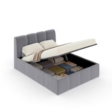 Lit nuage coffre 140x190cm velours gris BALTIMORE