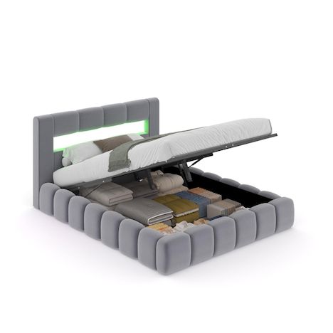 Caractéristiques techniques Couleur : GrisDesign : NuageType : Lit coffre de rangementPlaces : 2 placesRevêtement : VeloursStructure : Aspect boisLattes : Bois de peuplierGarnissage structure : Mousse 25 kg/m3LED : 16 couleursTélécommande : OuiAvec sommier : OuiAvec matelas : NonEntretienLe nettoyag