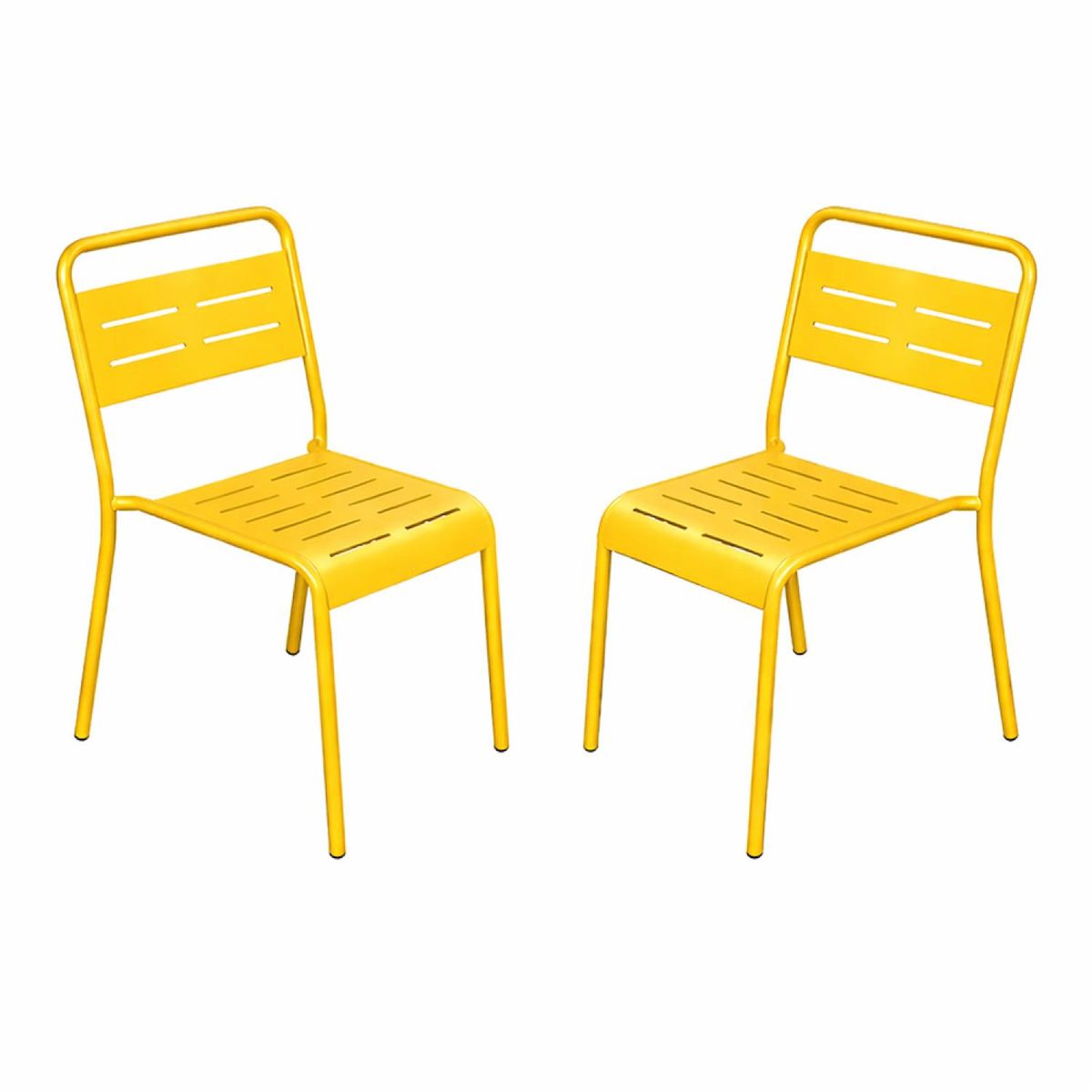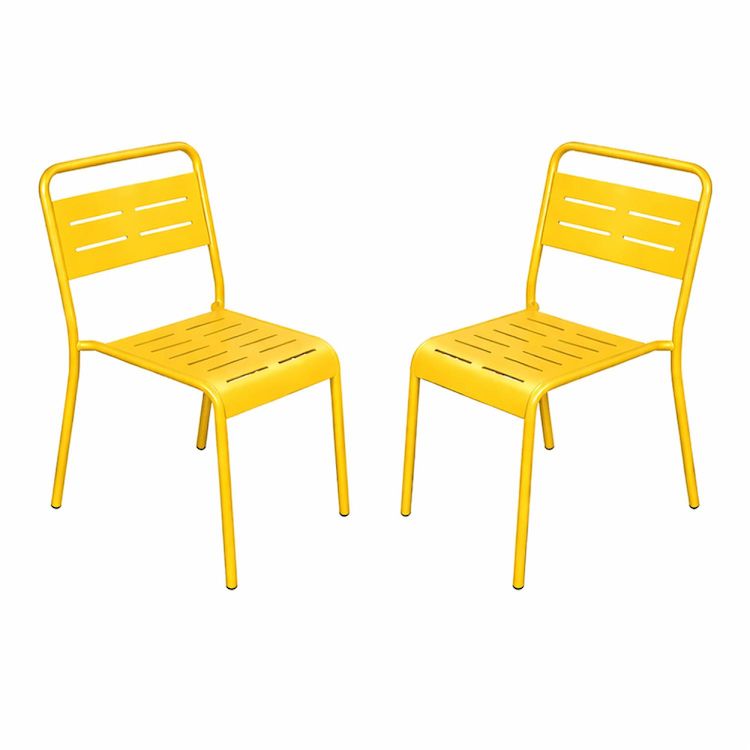 Lot de 2 chaises de jardin empilables jaunes Apportez une touche moderne et structurée à votre terrasse, balcon ou jardin avec cet ensemble de 2 chaises au design épuré. Leurs lignes sobres et leur coloris intemporel s'intègrent facilement dans tous les styles d'aménagement extérieur, du patio végét