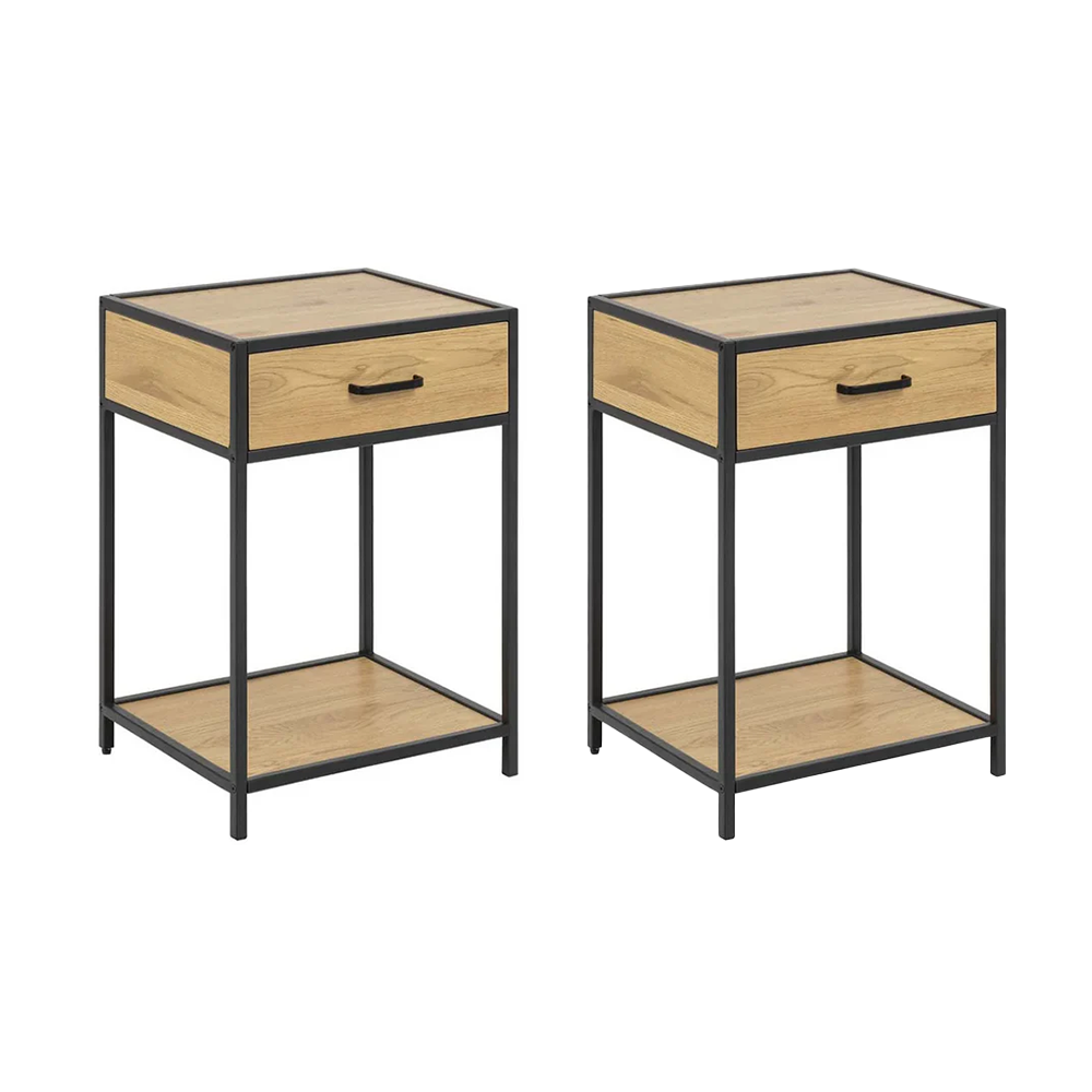 Lot de 2 tables de chevet avec tiroir bois et métal Factory