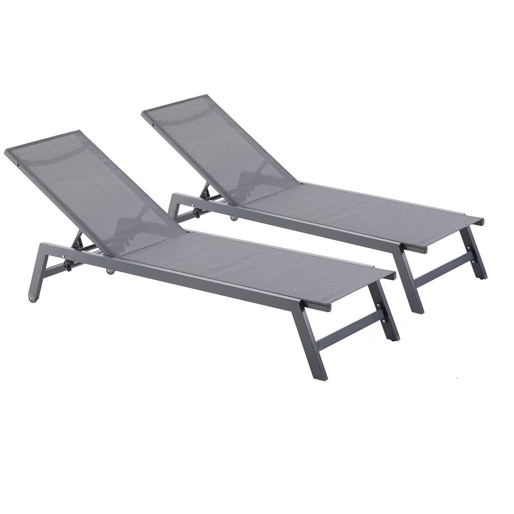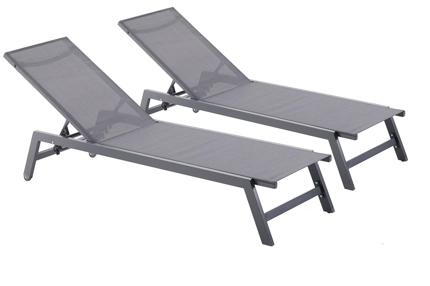 Lot de 2 transats avec roulettes gris foncé PRATO