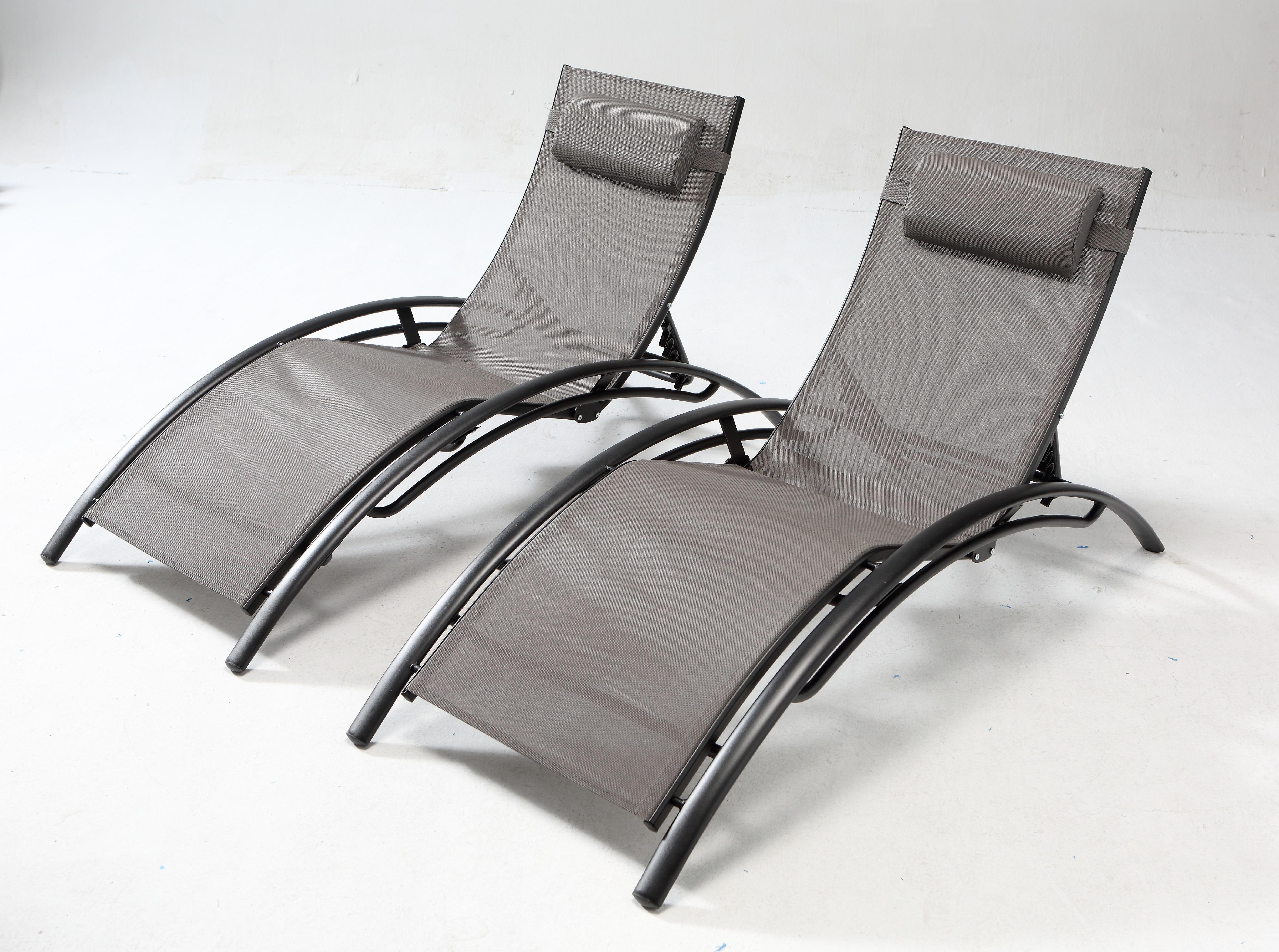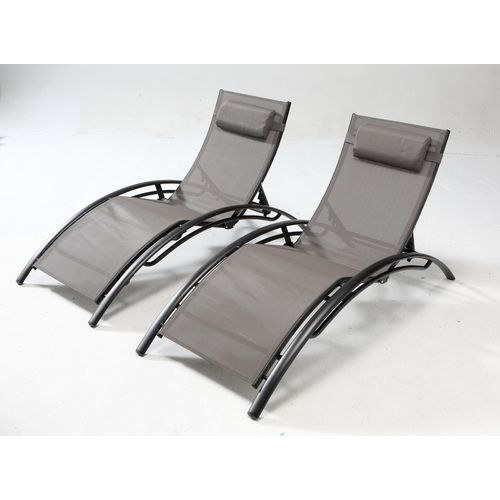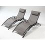 Lot de 2 transats empilables et ajustables en alu gris-noir BAHIA