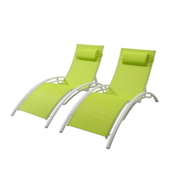 Lot de 2 transats empilables et ajustables en alu vert-blanc BAHIA
