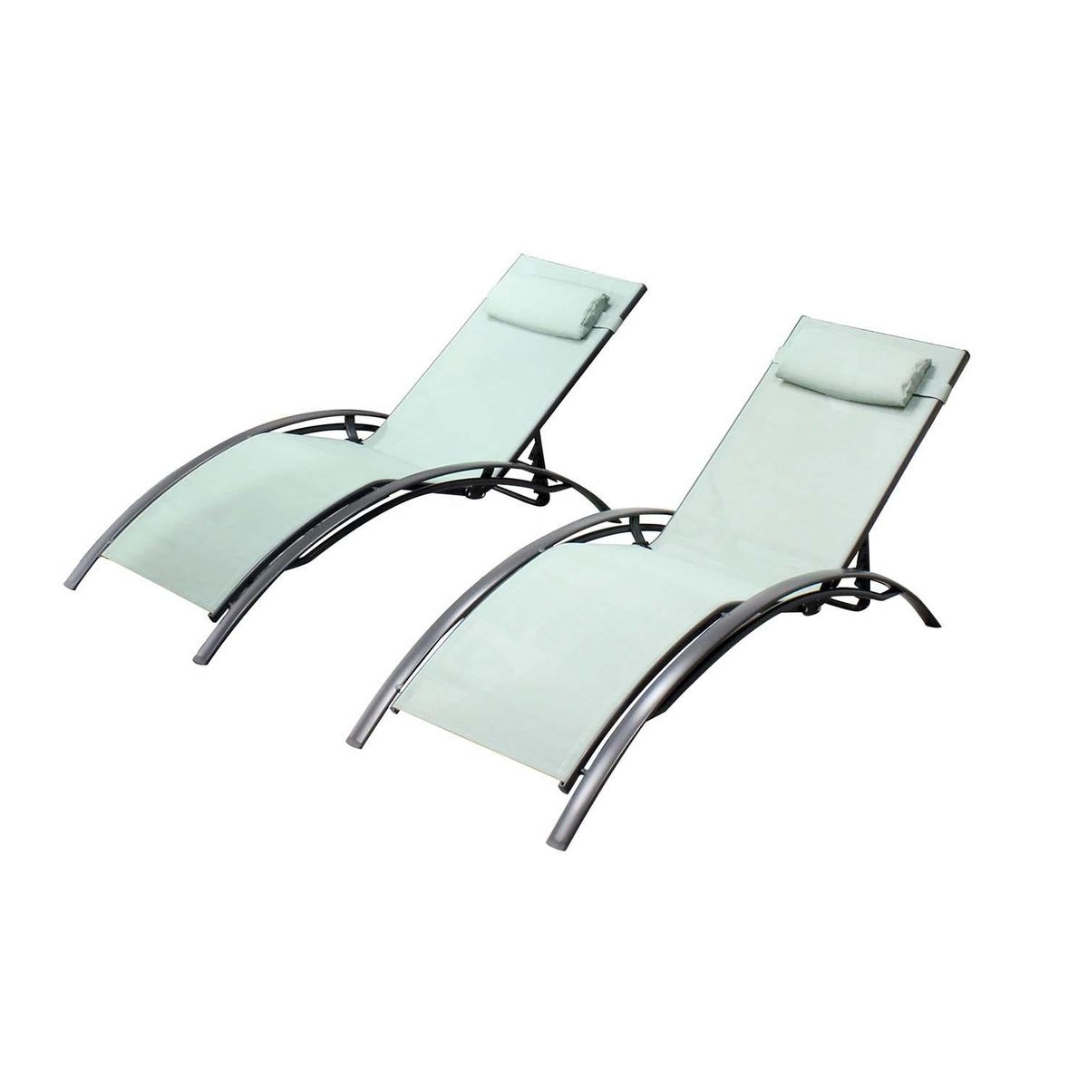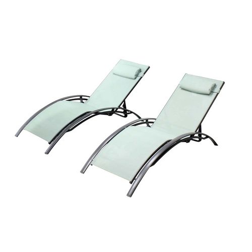 Lot de 2 transats en aluminium et toile PVC vert pastel BAHIA