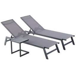 Lot de 2 transats et une table d'appoint gris et noir PRATO
