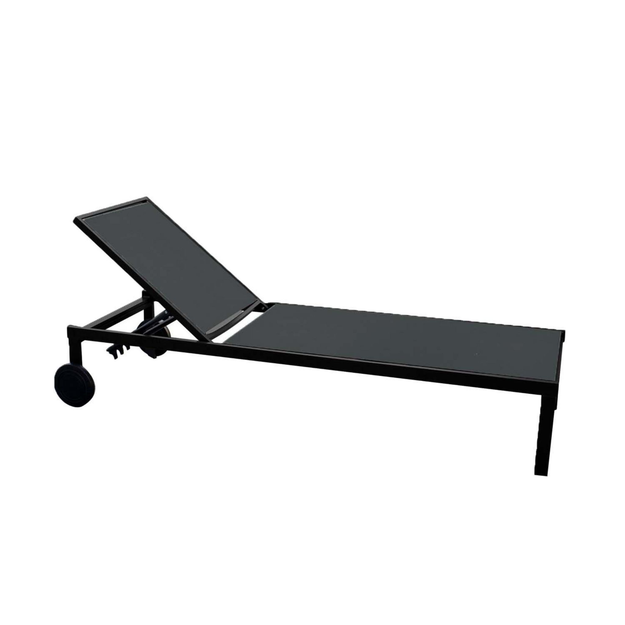 Lot de 2 transats inclinables avec roulettes en aluminium noir CUBA