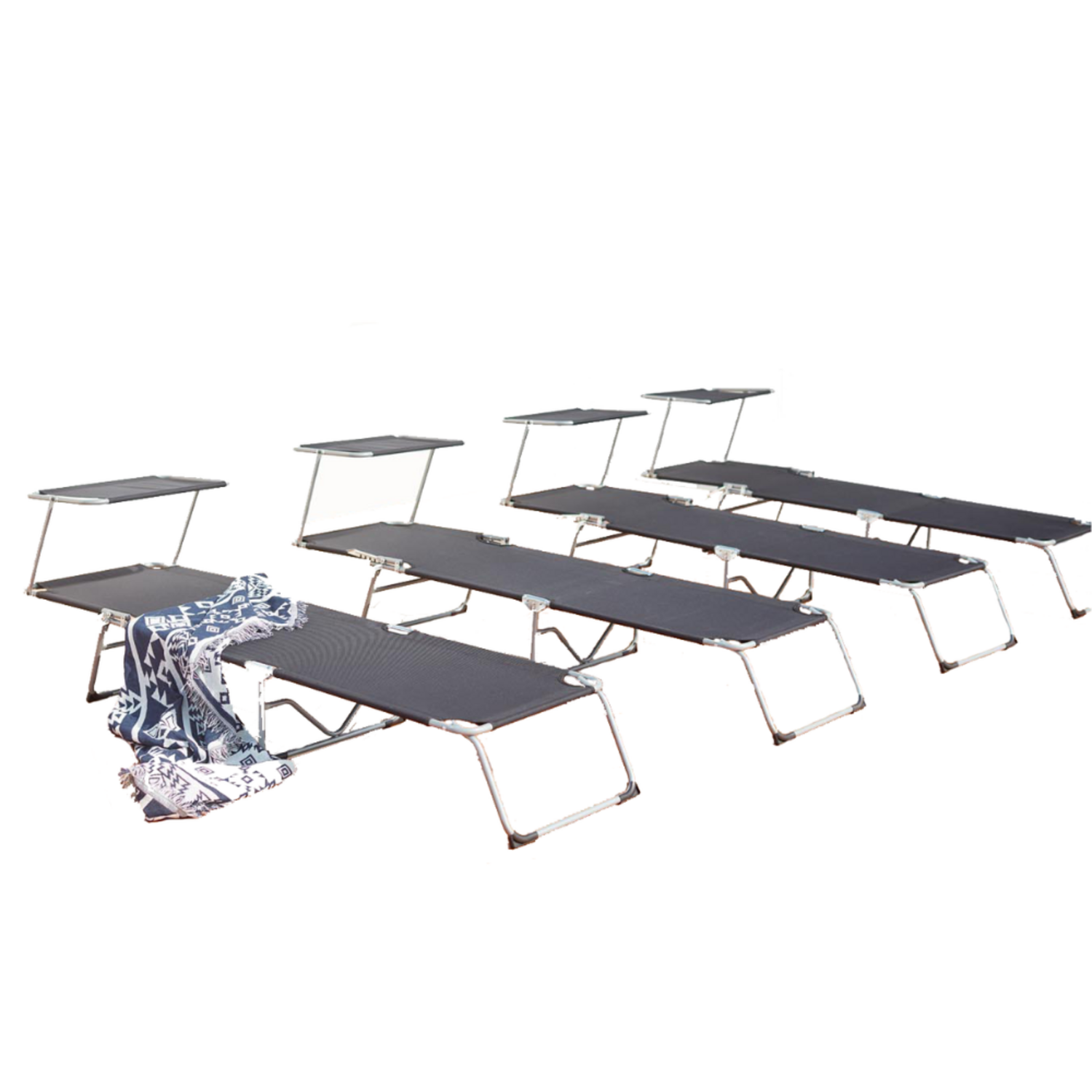 Profitez du beau temps dans votre jardin ou sur votre terrasse grâce à ces 4 bains de soleil modernes et design ! Pratiques, ces chaises longues sont faciles à transporter et facile à ranger grâce à leur fonction pliable et leur conception compacte. Leur structure et leur baleine en acier leur assurent une certaine robustesse. Leurs pares-soleil inclinables multi-positions vous permettront de vous protéger du soleil comme vous le souhaitez, et vous promettent alors de longues siestes confortablement installés sur votre terrasse ou au bord de votre piscine !