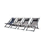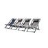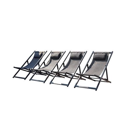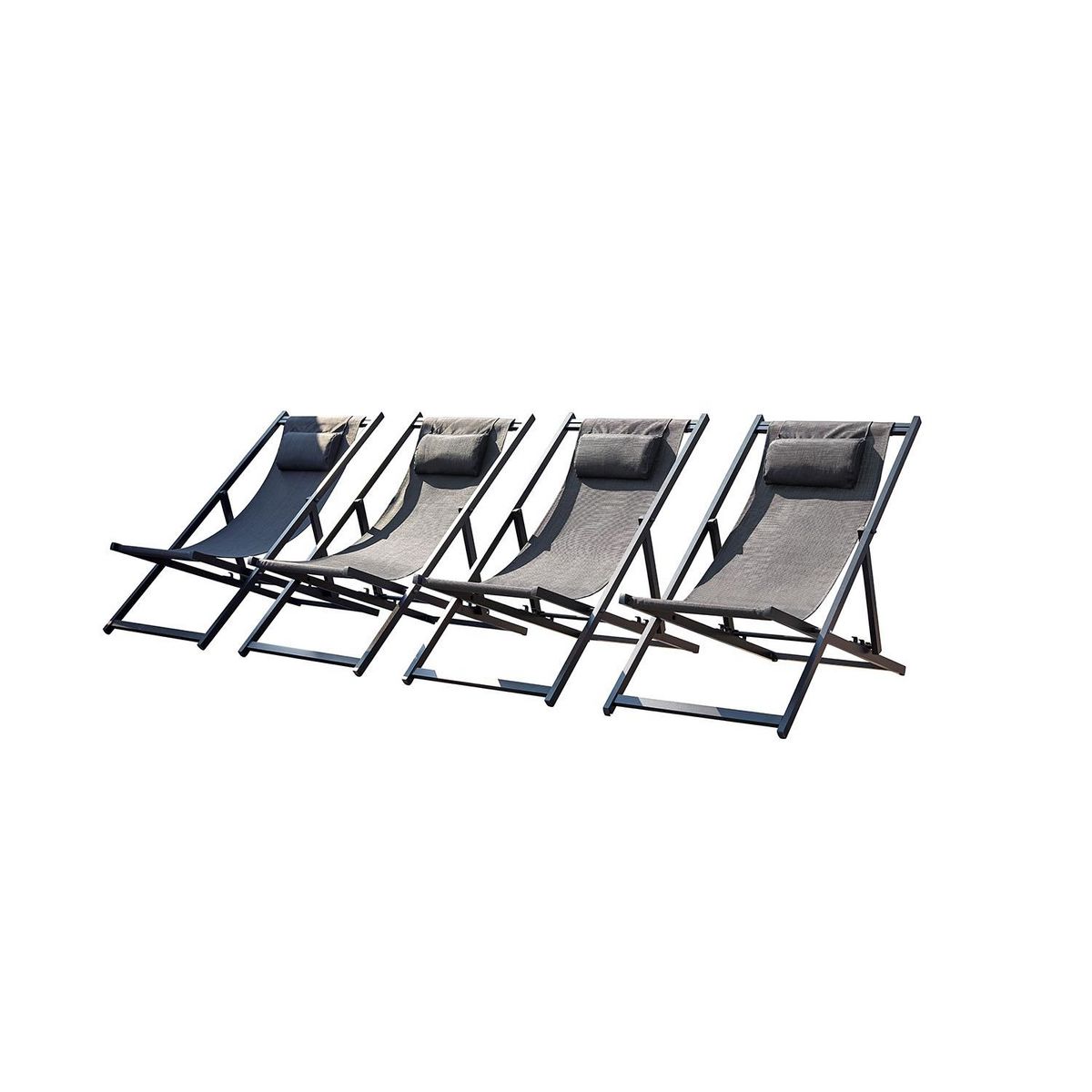 Prelassez-vous au soleil cet ete grâce à ces transats de type chilienne en aluminium et Tissu. L'aluminium est connu pour sa solidite, sa legèrete et pour sa resistance face aux intemperies ! Le Tissu est une matière qui vous promet une assise confortable. Facilement transportables, vous pourrez positionner ces chiliennes au gre de vos envies, au soleil ou à l'ombre, ou bien autour de votre piscine ! Inclinables, vous pourrez choisir la position qui vous convient le mieux pour profiter de votre pause ensoleillee ! Elles peuvent egalement se refermer sur elles-mêmes pour vous permettre un gain de place considerable lorsqu'elles sont inutilisees ! Leur couleur gris fonce s'adaptera à coup sûr à votre exterieur et permettra à ces transats de se marier avec chaque type de decoration de jardin ! Pour encore plus de confort, un coussin est place au niveau de la tête.