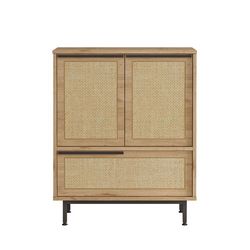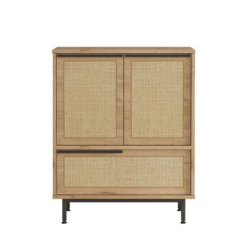Meuble à chaussures 3 portes finition bois et cannage 75x90cm ABA