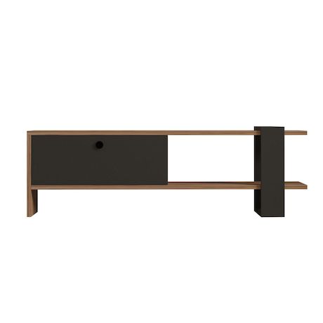 Meuble TV asymétrique gris anthracite avec placard aspect bois 120cm OVA