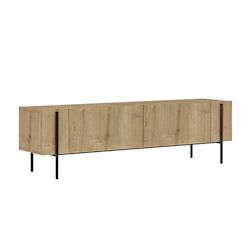 Meuble TV avec placards bois et détails noirs 160cm FRENA