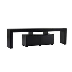 Adoptez un style raffiné et contemporain avec ce meuble TV en bois noir, conçu pour ajouter une touche d'élégance et de chaleur à votre salon. Son design épuré et sa structure allongée reposent sur deux pieds hauts de 50 cm, créant ainsi un effet aérien tout en simplifiant le nettoyage sous le meuble. Ce meuble associe parfaitement fonctionnalité et esthétique grâce à ses deux placards fermés (30 x 45 cm) qui offrent un rangement discret pour vos appareils, câbles et autres accessoires. Sa bibliothèque centrale ouverte est idéale pour exposer une box TV, une console de jeux ou des objets décoratifs, permettant de garder votre espace organisé tout en ajoutant du caractère. Avec ses dimensions généreuses (180 x 31,3 x 50 cm), ce meuble peut accueillir des écrans larges tout en préservant une silhouette élégante et discrète. La teinte bois noir de la structure confère une allure sophistiquée, qui se marie aisément avec tout type de décor, qu'il soit moderne ou plus altique. Un meuble à la fois fonctionnel, pratique et chaleureux, idéal pour aménager un coin TV tout en offrant un cadre soigné et harmonieux à votre intérieur.