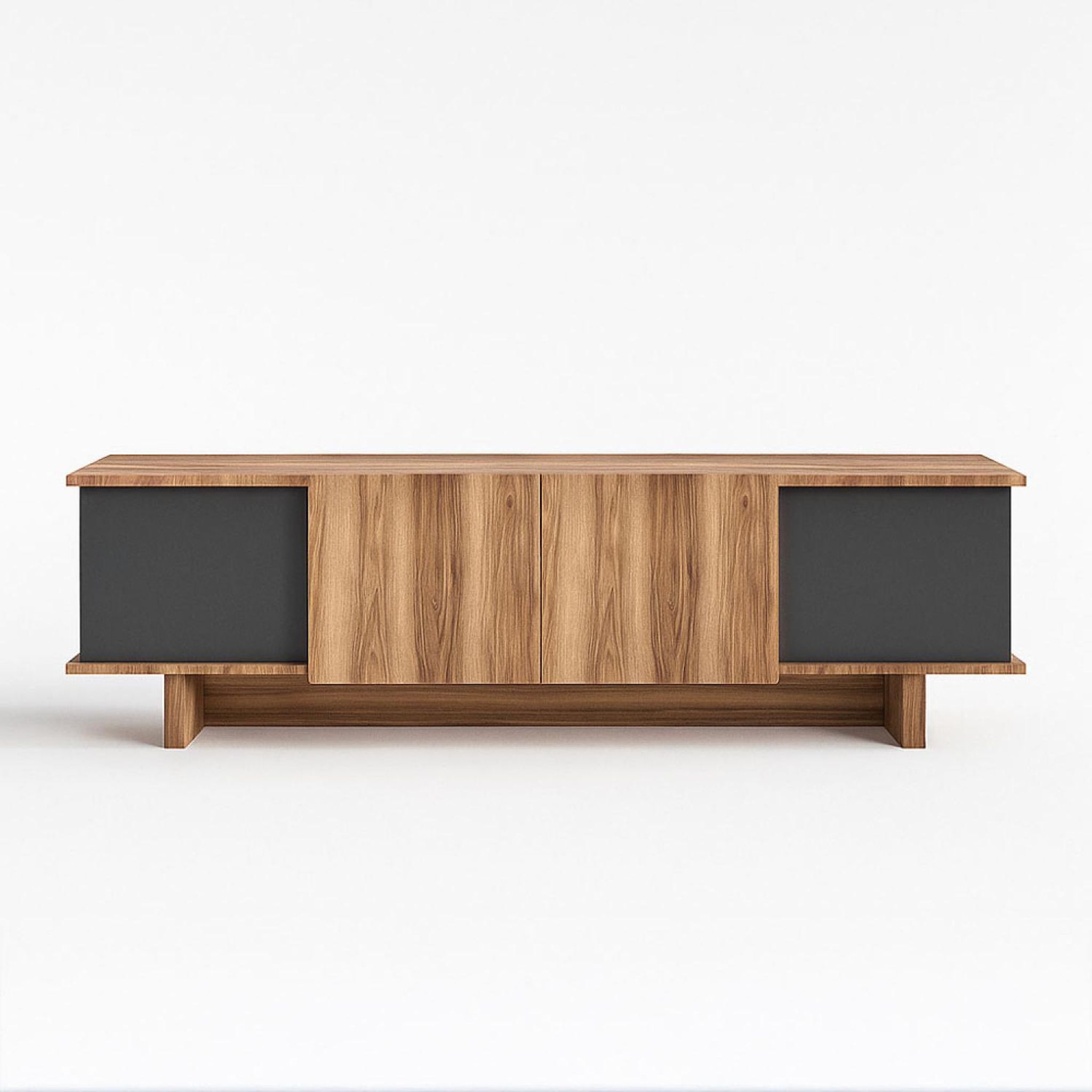 Meuble TV design avec placards aspect bois et gris anthracite 180cm BRONI