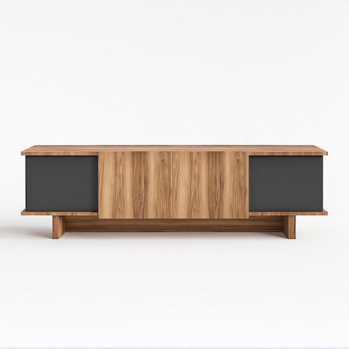 Caractéristiques techniques Couleur : Bois de noyerCouleur secondaire : Gris anthraciteRangements : 4 placardsMatériaux : Panneaux de particules mélaminésOuverture pour câble : NonEntretienNettoyer avec un chiffon légèrement humide. Eviter tout produit contenant des solvants.DimensionsDimensions tot