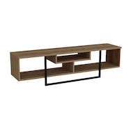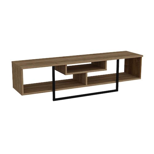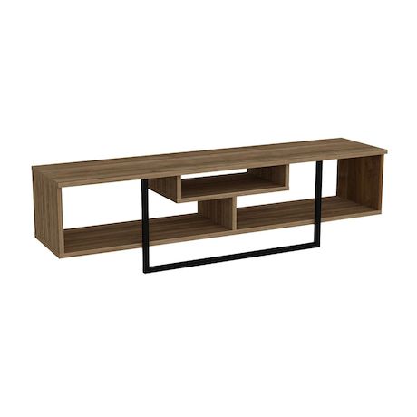 Caractéristiques techniques Couleur : NoyerFinition : effet noyerMatériaux : panneaux de particules 100% mélaminéCouleur pied : noirEspaces de rangements supplémentairesPeut être fixé au murEntretienNettoyer avec un chiffon légèrement humide ou sec. DimensionsDimensions du meuble (L x H x p) : 149,4