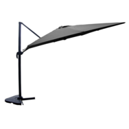 Caractéristiques techniques :Structure : L'armature, les 8 baleines et la poignee sont en aluminiumCouleur de la structure : Gris anthraciteTaille : 3x4mDimensions du mât : 53x77mmHauteur du parasol : 2,8mGrammage toile : 230 gr/m²Coloris toile : Grey (Gris)Rotatif : Oui à 360°Forme : Rectangula