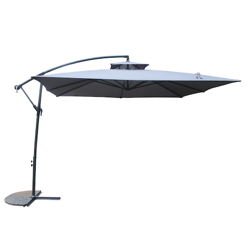 Profitez de votre jardin ou votre terrasse avec le parasol deporte carre Capri, son design moderne et sa couleur de toile sobre lui permettront de s'adapter à coup sûr à votre exterieur.