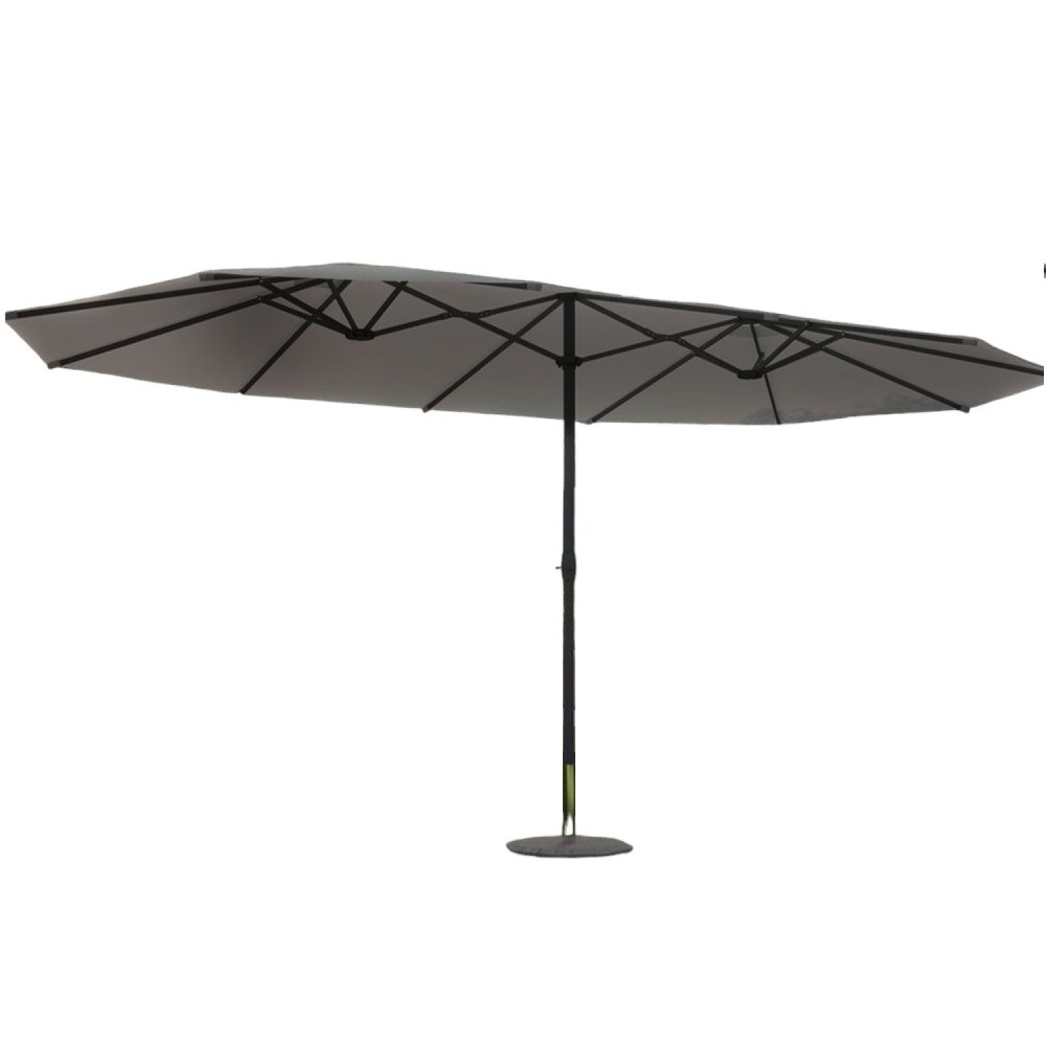 Protegez-vous du soleil grâce au parasol double 2,7 x 4,6 m Venice. Ce grand parasol est compose d'un mât et d'une grande toile en polyester déperlant. Pratique, il se plie facilement grâce à son système de manivelle. Il vous permettra de faire de l'ombre sur tout un grand salon de jardin pour profiter de vos repas estivaux en famille ou entre amis.